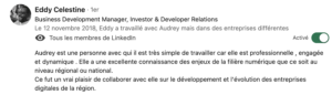 « Audrey a su très rapidement comprendre notre solution et trouver les synergies possibles au sein de son réseau. En nous mettant en relation avec les bonnes personnes et au bon moment, elle nous a permis de lancer de beaux projets avec une des plus grandes marque de luxe. Un grand merci à elle…»