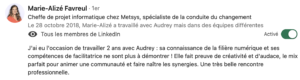 Auparavant, énormément sur les technologies du monde entier… Audrey Lecomte est très portée maintenant sur la souveraineté des données et surtout la souveraineté (intelligence économique) tout court en terme de dépendance.