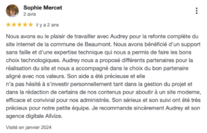Non seulement la formation était parfaite mais en plus Audrey a réussi à me faire adorer l’outil vu la technicité et le challenge que cela demandait. Je recommande Allvize à 100%.